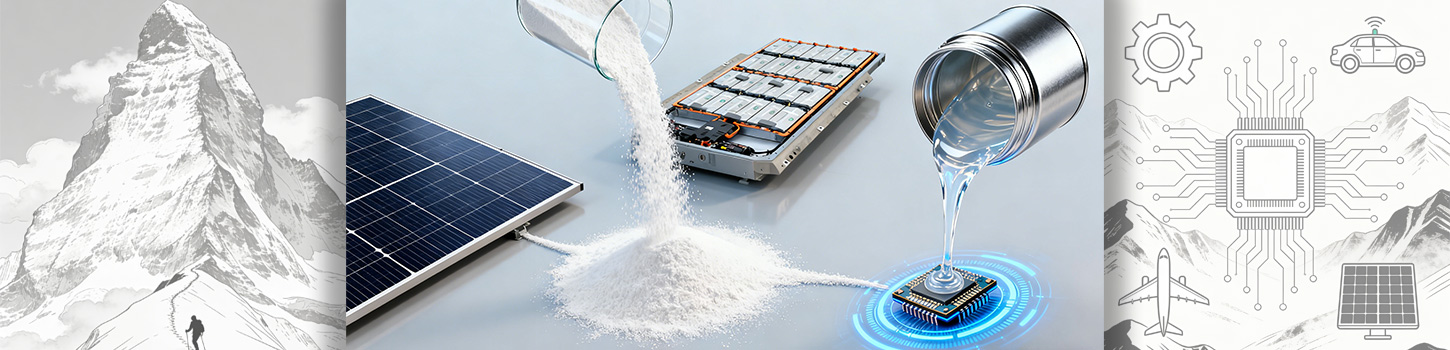 | 我们的方案:提供「硅微粉」与「气相法白炭黑」的功能粉体协同方案,分别构建极致高效的导热通路并确保材料体系的工艺稳定性,为芯片封装与散热提供关键材料支撑。 |